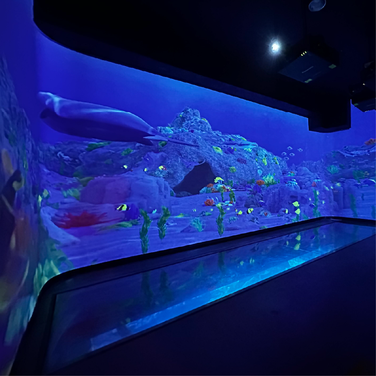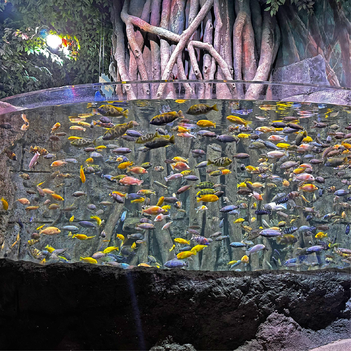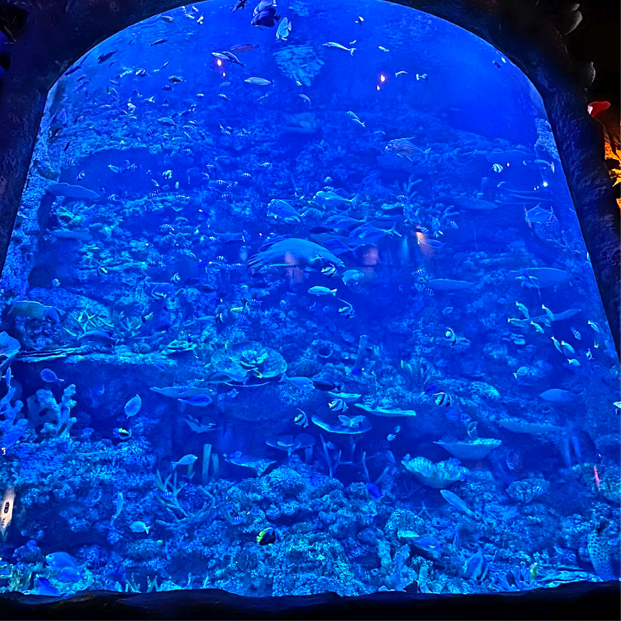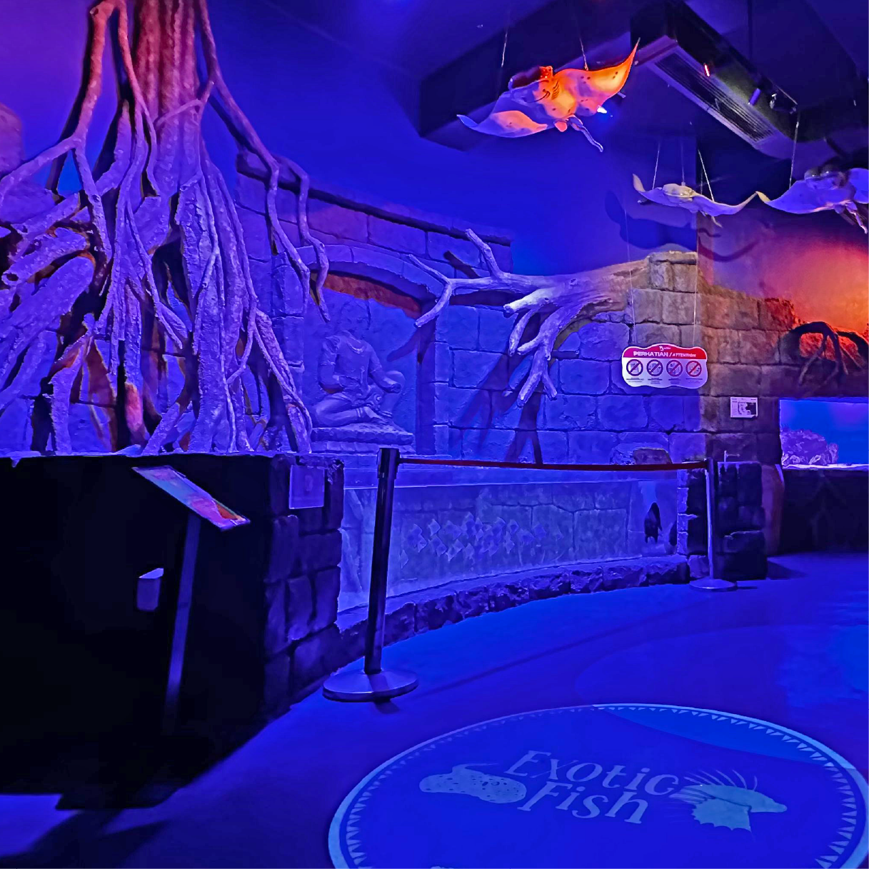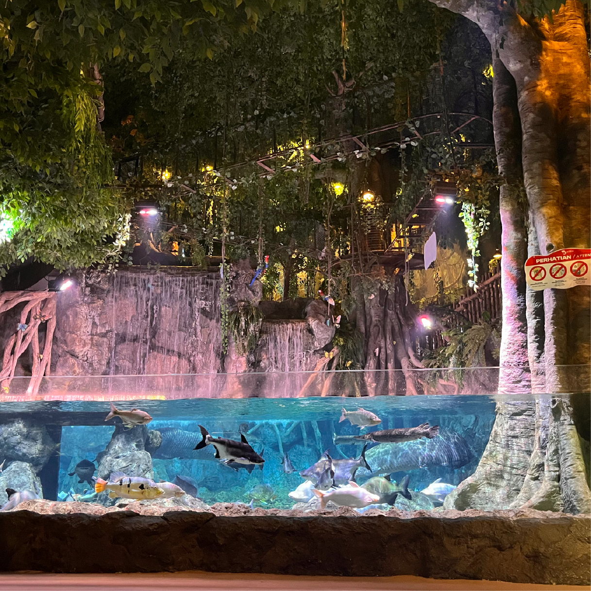 Bersiaplah untuk menyaksikan keindahan di akuarium tertinggi di Indonesia Raja Ampat! Akuarium raksasa ini menyuguhkan panorama ikan-ikan yang cerah serta terumbu karang yang hidup, dan dapat dinikmati dari dua lantai sekaligus. Jangan lewatkan lukisan dinding spektakuler di sekeliling akuarium yang mencerminkan keaslian pesona alam Indonesia.